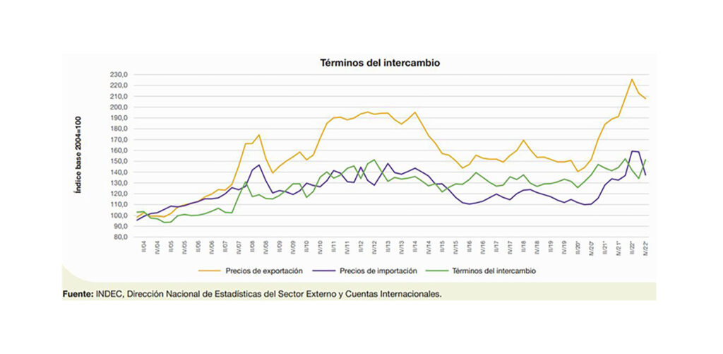 De la obra del economista Orlando Ferreres sobre Dos Siglos de Economía Argentina surge también que los términos de intercambio de 2022 fueron, para la Argentina, los mejores desde 1810 a la fecha y solo comparables a los de 2011 y 2012.