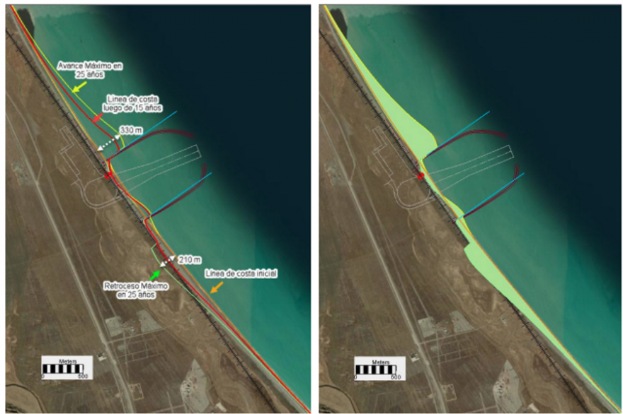 “Un mal funcionamiento del “by-pass” podría provocar la erosión de la costa sur en más de 300 metros costa adentro y un crecimiento en el depósito de sedimentos en la zona norte de igual magnitud”, señalaron.