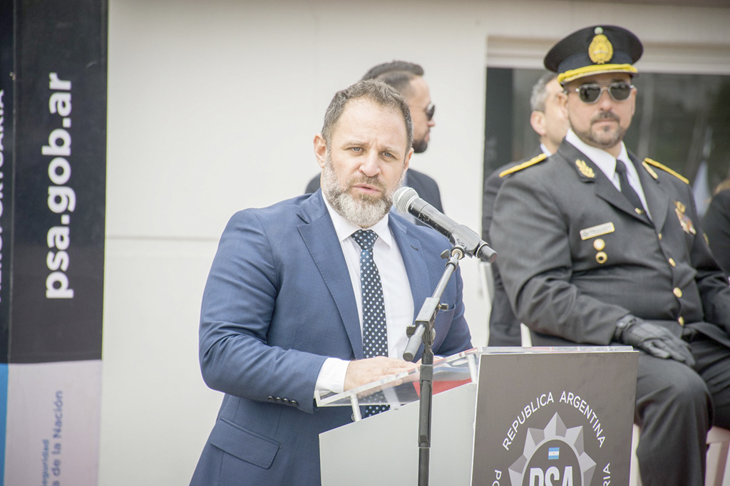 El director nacional se refirió a la ley de tasa aeroportuaria, que posibilita un presupuesto específico para la PSA: “Con el acompañamiento del Gobierno nacional conseguimos un anhelo histórico. La tasa de seguridad aeroportuaria significa para esta comunidad a la que pertenecemos un salto importante: tenemos la convicción de que se terminaron los tiempos de mendigar para pasar a una acción concreta y que vamos a tener las herramientas que efectivamente necesitamos para llevar adelante nuestra tarea”.