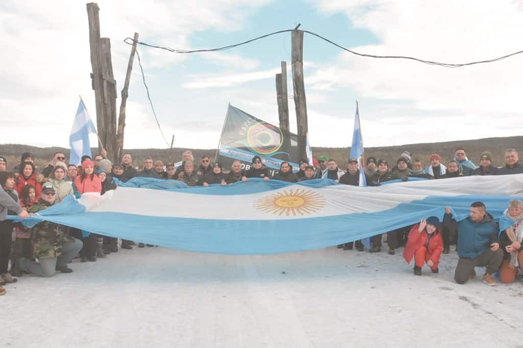 TOLHUIN.- Un importante grupo de manifestantes, en su mayoría veteranos de Malvinas de la provincia, realizó un acto frente a la tranquera de la estancia El Relincho donde la empresa Leolabs Argentina SRL instaló y puso en funcionamiento una estación terrena de Banda S con el supuesto fin de rastrear basura espacial y con autorización del Gobierno nacional y provincial.