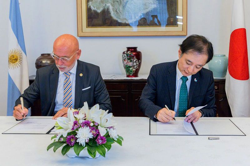 El Gobernador participó en la Embajada de Japón de la firma del contrato para la provisión de equipamiento médico para el Centro de Rehabilitación de Ushuaia entre el Embajador Yamauchi Hiroshi y el presidente de la Asociación Rotary Club de Ushuaia, Adrián Bruno.
