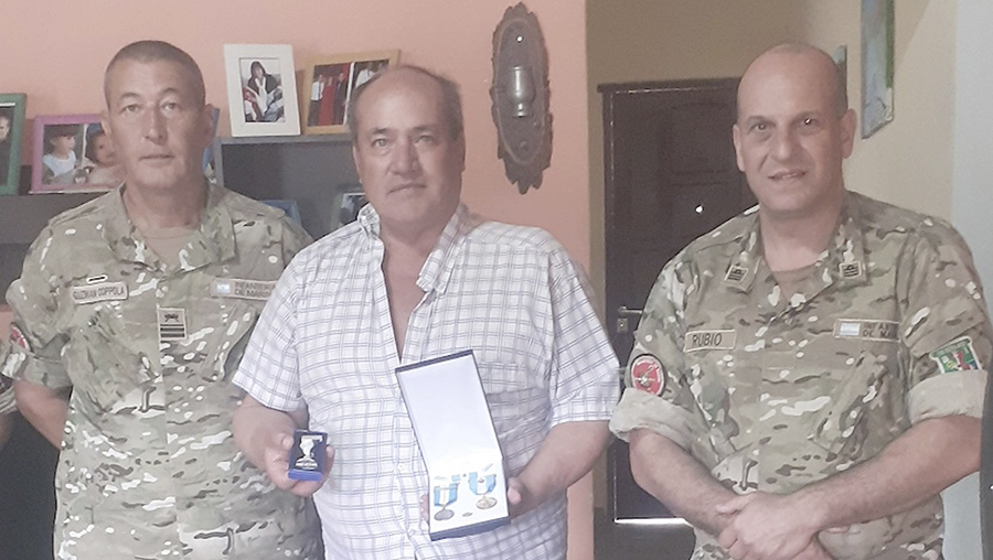 BUENOS AIRES (La Gaceta Marinera).- En la ciudad entrerriana de Villaguay, la Armada Argentina condecoró al Conscripto Clase 62, Jorge Ricardo Sánchez, por su participación en el conflicto del Atlántico Sur, donde combatió como integrante de la 4ta. Sección de la Compañía “Nácar” del Batallón de Infantería de Marina N° 5 (BIM5) en Monte Tumbledown.