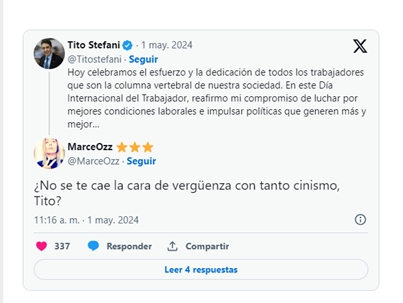 En el marco del Día del Trabajador, el Diputado de Juntos por el Cambio, Héctor «Tito» Stefani, compartió en X un mensaje de reconocimiento a los trabajadores y trabajadoras.