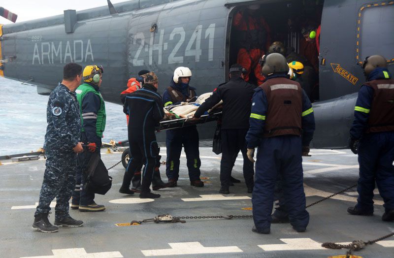 Tras realizar una evaluación de las condiciones hidrometeorológicas del lugar, el herido fue trasladado con un helicóptero Sea King de la Aviación Naval desde la cubierta del “Angelescu” hacia el rompehielos ARA “Almirante Irízar”, en donde recibió una atención sanitaria de mayor complejidad, se constató que presenta una fractura de peroné, se encuentra estable hemodinámicamente y fue inmovilizado con un yeso, para finalmente iniciar su traslado hacia un centro hospitalario en la ciudad de Ushuaia.