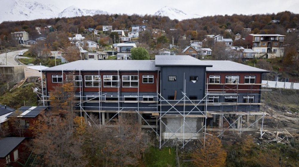 El gobernador Gustavo Melella, acompañado por la vicegobernadora Mónica Urquiza; el legislador provincial, Federico Sciurano y el secretario de Infraestructura Escolar, Mauricio Turdó, recorrió la obra de la escuela que se está construyendo en el Barrio Ecológico de la ciudad de Ushuaia.