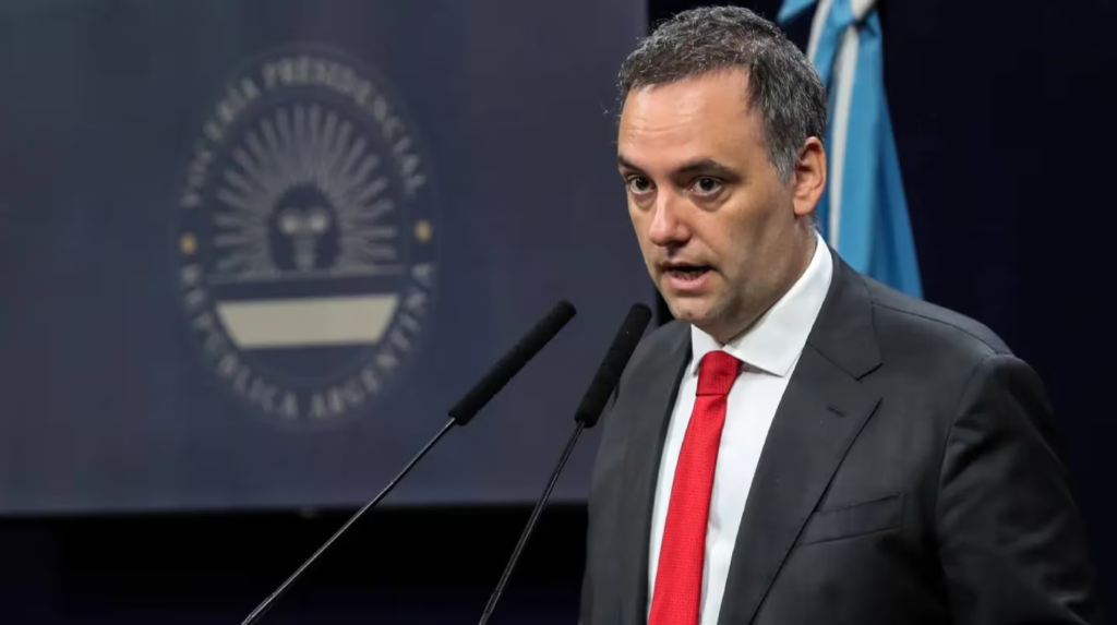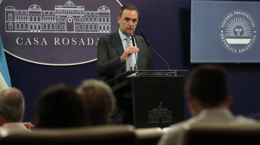 Adorni planteó: “En los últimos días vimos alguna repercusión en la cotización de los tipos de cambio financieros, a partir de rumores de desacuerdos con algunos puntos de la Ley Ómnibus, sumado a los amparos contra el Decreto de Necesidad y Urgencia (DNU) de desregulación económica, que generaron que los dólares financieros salten de $900 a $1200″.