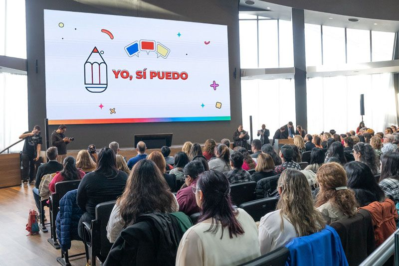 El gobernador Gustavo Melella, junto a la vicegobernadora Mónica Urquiza, la presidenta de la fundación Un Mundo Mejor es Posible, Claudia Camba y la coordinadora del Programa en Argentina, Cristina Fernández González, encabezaron la entrega de certificados de finalización a las y los participantes del programa de alfabetización “Yo, Sí Puedo”.