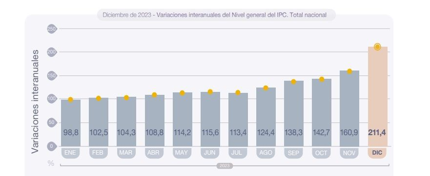 En declaraciones radiales, el mandatario consideró un “logro enorme” que el índice de precios al consumidor (IPC) de diciembre haya sido de 25% y lo atribuyó a un “plan de estabilización hiperortodoxo” que consiste en “un fuerte ajuste fiscal para que no haya más necesidad de emisión para financiar al fisco, un proceso de saneamiento del Banco Central, que está en curso, y un sinceramiento en el mercado de cambios”.