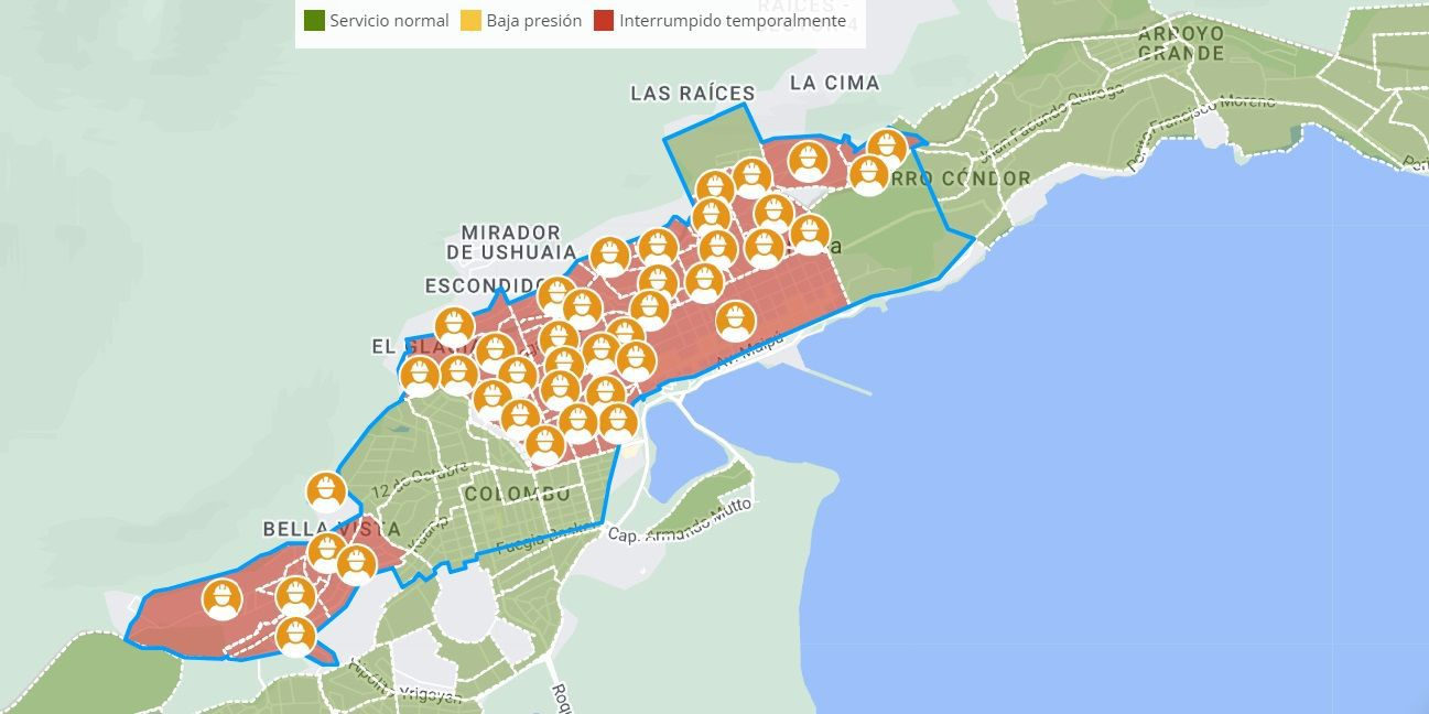 Desde la Dirección Provincial de Obras y Servicios Sanitarios se dispuso ayer restringir, desde las 14:00 y hasta las 20:00, el servicio de agua potable en la zona céntrico de Ushuaia y en los barrios Martín Güemes, Los Canelos, Chacho Peñaloza, Provincias Unidas, 2 de abril, Los Pinos, José Hernández, Las Lengas, Piedrabuena, La Antena, Intevu 13 y14, Almirante Storni, Almirante Brown, Bella Vista, Alakalufes, Los Andes, Latinoamericano, La Cumbre, Kaupen, Le Martial, Las Terrazas, Bosque del Faldeo, Ecológico, Los Calafates, Los Alerces, Itulara, Akawaia, 245 Viviendas, zona alta de Magallanes (desde Laserre hasta Don Bosco), Obras Sanitarias, La Cumbre, La Colina, Perón, Towora y zonas aledañas para de esa manera intentar de recuperar los niveles de almacenamiento de agua potable.
