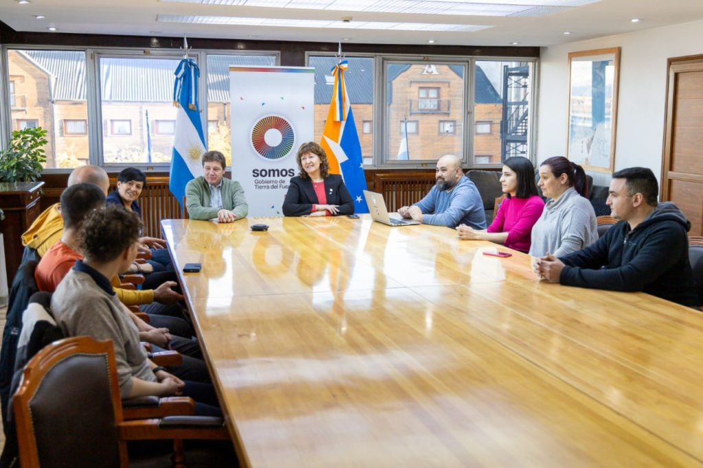 El gobernador Gustavo Melella se reunió con jóvenes que son parte de la bolsa de talento fueguina. Algunos de ellos ya están contratados por las empresas del ecosistema tecnológico sponsor de la iniciativa y otros están becados por seis meses para luego pasar a formar parte del personal. Participaron del encuentro la Vicegobernadora, Mónica Urquiza y la Presidenta de la Agencia de Innovación, Analía Cubino.