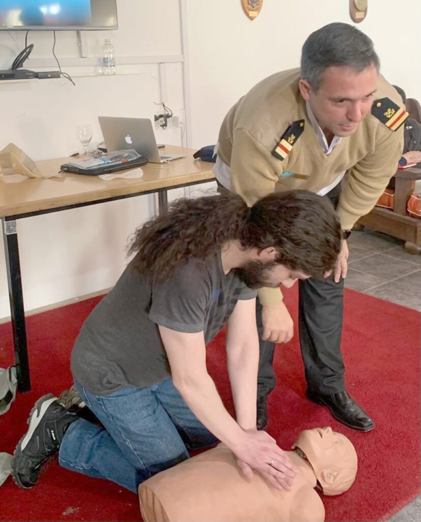 En estos entrenamientos de primeros auxilios, se utilizó también un muñeco de RCP, para facilitar la familiarización del alumno con la potencial víctima. En esta instancia, se realizaron ejercicios de reanimación; determinando y evaluando las diferencias entre un paro respiratorio y uno cardíaco, actuando en consecuencia.