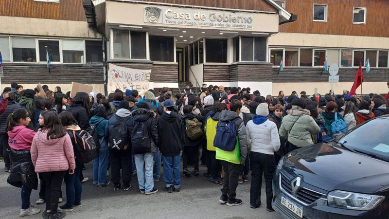 Estudiantes secundarios del colegio Olga B. de Arko (EPET) y el Polivalente de Arte se organizaron para marchar y manifestarse este martes por la frente a Casa de Gobierno, donde exigieron una reunión autoridades gubernamentales por los reclamos por problemas edilicios que denuncian, entre otros pedidos.