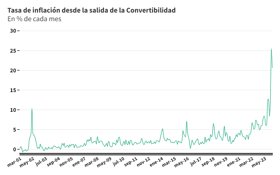 Ese guarismo estaba en línea con lainflación de la Ciudad de Buenos Aires, que fue de 21,7% mensual, según informó la Dirección de Estadísticas y Censos porteño. Una de las alzas más significativas y que tuvo mayor incidencia sobre el nivel general se dio en el rubro alimentos y bebidas no alcohólicas, que tuvo un aumento del 25,4%.