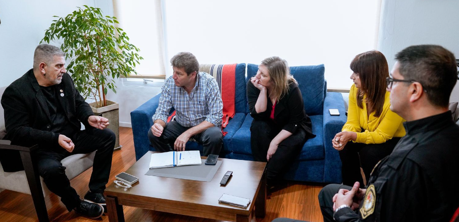 Tras la reunión que mantuvo con la presidenta del Instituto Provincial de Vivienda y Hábitat, Laura Montes; los ministros de Educación y Salud de la provincia, Pablo López Silva y Judit Di Giglio; y el subjefe de la Policía Provincial, Oscar Alfredo Barrios Kogan; Gustavo Melella señaló que “junto al IPVyH y a los ministerios que son de actividades centrales y de trascendencia para nuestra población, como es la salud, la seguridad y la educación, hemos hecho un acuerdo para iniciar una operatoria especial para entregar lotes con servicios, más allá de lo que se está haciendo para la demanda general de nuestra población”.