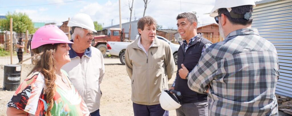 El gobernador Gustavo Melella visitó la obra del Centro de Desarrollo Infantil que se construye en Tolhuin. Actualmente, se está concretando el hormigón de la platea y fundaciones, para posteriormente continuar con los montajes de la estructura metálica del edificio.