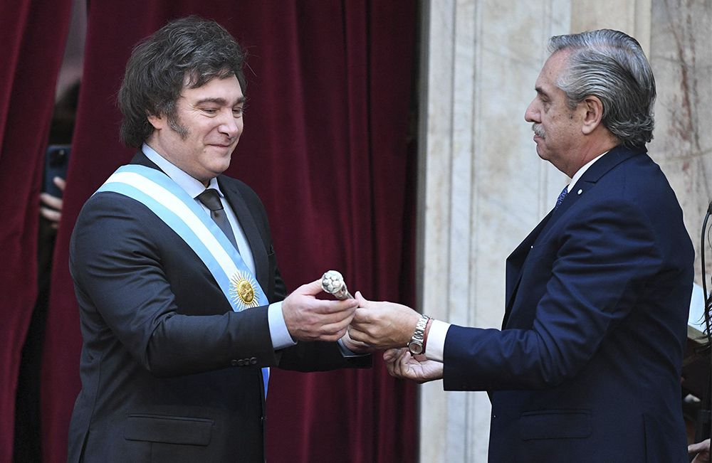 «Hoy damos por terminada una larga y triste historia de declive», afirmó Milei en el inicio de su mensaje a la ciudadanía, luego de jurar y recibir los atributos presidenciales.