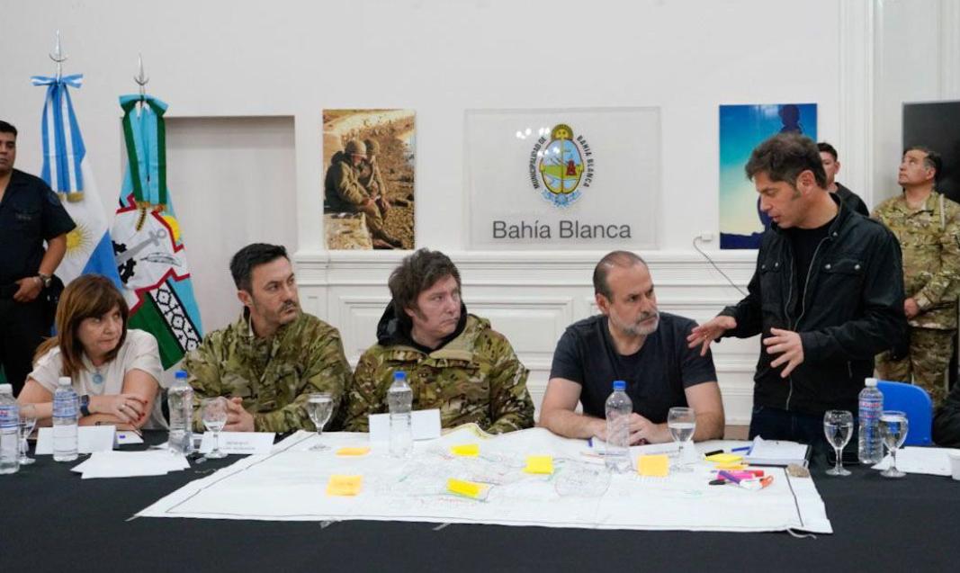 El gobernador de Buenos Aires, Axel Kicillof, viajó a Bahía Blanca y encabezó el comité de crisis -hasta la llegada de Milei- integrado por las carteras de Seguridad y Salud, junto con Defensa Civil.