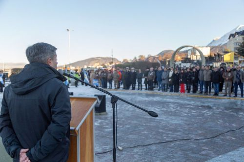 La ceremonia se llevó adelante en la Plaza Islas Malvinas de la ciudad de Ushuaia y contó con la participación de representantes del Poder Judicial, legisladores, miembros del gabinete provincial, representantes del Municipio de Ushuaia, Fuerzas Armadas y de Seguridad, Veteranos de la Guerra de Malvinas, maestros bicontinentales, público en general.