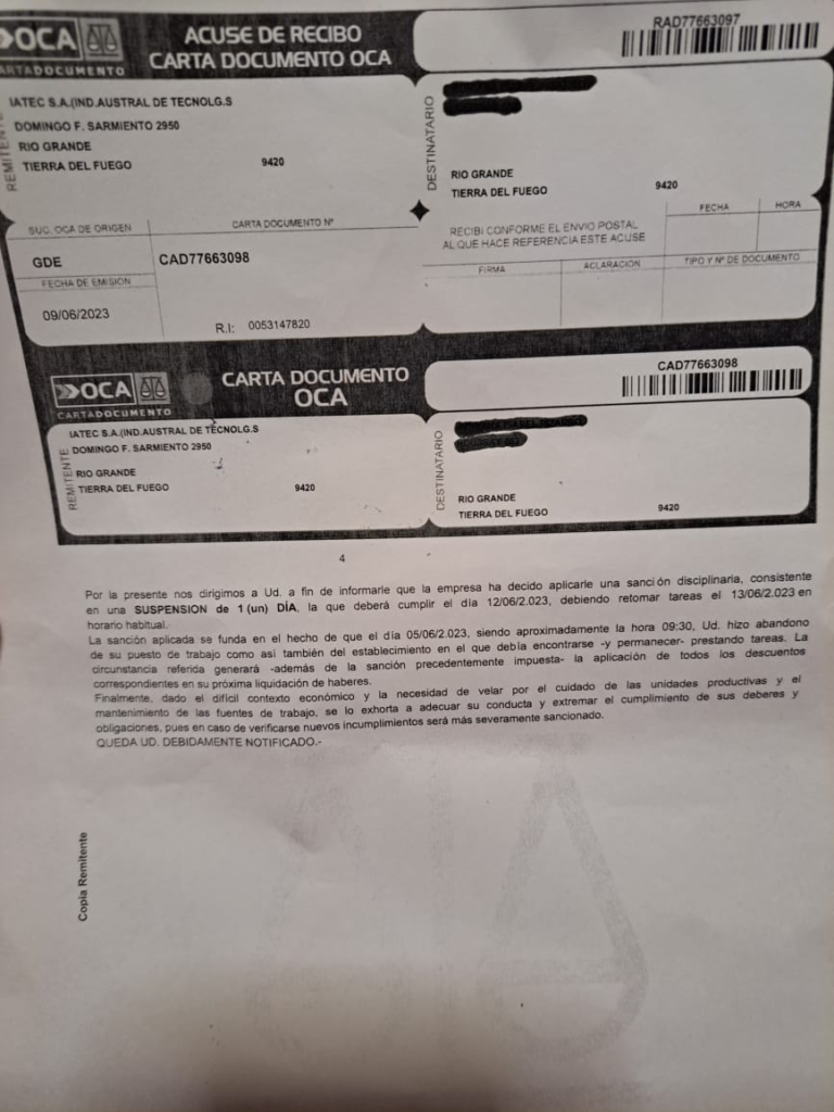 Por este hecho, algunos efectivos de la planta de Mirgor se retiraron al no haber servicio de comedor y, según pudo averiguar ((La 97)) Radio Fueguina, esa acción les costó la suspensión este lunes 12 de junio, afectando a varias cientos de personas quienes no pudieron ingresar a su puesto de trabajo esta mañana.