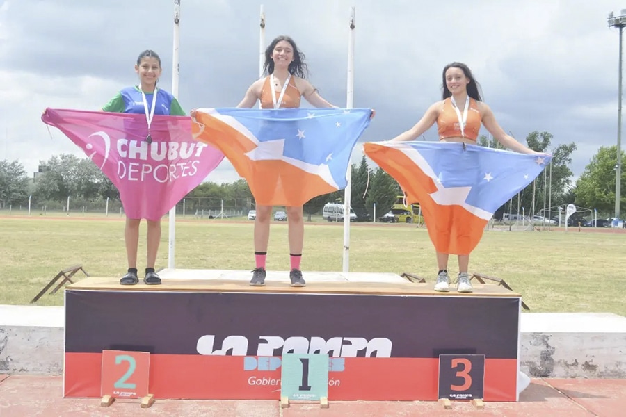 Masculino (13/15 años, en Santa Rosa): 100m (velocidad del viento: 4,0 metros/segundo): 5.Juan Flores (09) 11.86. 300m (12): 7.Thiago Fassola (08) 41.90; 8.Juan Cerra (08) 41.93. 110m c/v (4,0): 3.Uni de Antueno (09) 17.06; 4.Valentino Portella (09) 17.56. Alto (5): 3.De Antueno 1,55; 4.Francisco Vaca (10) 1,50. Jabalina (600 gramos) (11): 1.Nicolás Ravassa (08) 54,54; 5.Santino Pianovi (09) 39,16. Hexatlón (5): Alto: 1.Ian Bianchi (09) 1,66; 3 Bruno Malizia (08) 1,57. Jabalina: 1.Malizia 35,83; 3.Bianchi 32,03. 800m: 1.Malizia 2:20.92; 3.Bianchi 2:29.69. Posiciones finales: 1.malizia; 2.Bianchi. Relevo 4x100m (6): TdF descalificado. Posiciones (incompleto): 1.T.Fuego 92; 2.Chubut 88; 3.Santa Cruz 73; 4.La Pampa 71; 5.R.Negro 59; 6.Neuquén 15. Hoy: 9:00 2.000 m; 9:40 200m; 10:30 disco (1). Mañana: 9:00 largo; 10:00 martillo (4); 11:30 posta combinada (4×100/200/300/400m).