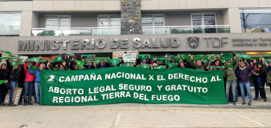 La Campaña Nacional por el Derecho al Aborto Legal, Seguro y Gratuito regional Tierra del Fuego convocó a un «pañuelazo por nuestra libertad y nuestros derechos» este lunes 19 en Ushuaia, Río Grande y Tolhuin, tras la iniciativa de La Libertad Avanza con la intención de derogar la Ley 27.610 de acceso a la Interrupción Voluntaria del Embarazo.