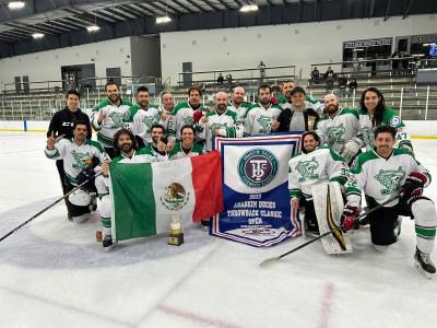 El crack fueguino Pedro Baeza disfruta del hockey sobre hielo en Los Ángeles y fue protagonista para el título de los México Warriors este fin de semana en el torneo organizado por los Anaheim Ducks dentro del segmento Open.