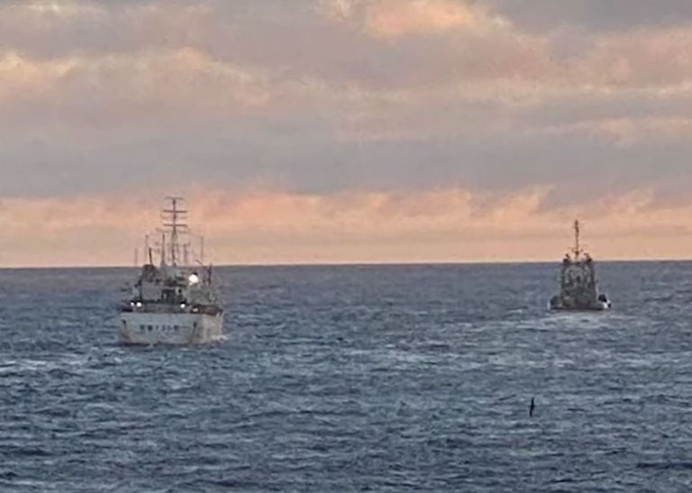 En cuanto a las dos embarcaciones detectadas, ambas zarparon de las Islas Malvinas simultáneamente y con rutas idénticas, «lo que sugiere que el remolcador podría estar prestando asistencia al buque pesquero», según menciona Prefectura.