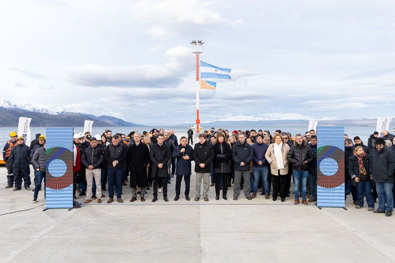“Este es un puerto en donde no solamente recalan los barcos de carga, los pesqueros, sino también más de 500 cruceros que llegan a esta puerta de la Antártida, a esta puerta de la Argentina, a esta puerta que está aquí en un vórtice del país, pero que tenemos todos en nuestro corazón muy profundamente”, destacó Giuliano.