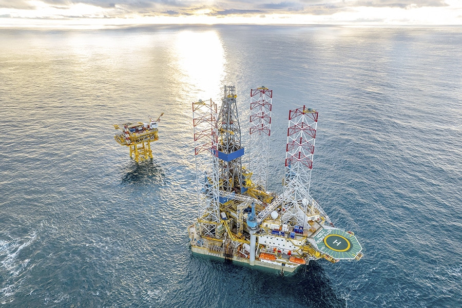 La plataforma Noble Regina Allen, instalada a 60 kilómetros de las costas de Tierra del Fuego, es el equipo elegido por TotalEnergies y sus socios Wintershall Dea Argentina y Pan American Energy para la perforación de los tres pozos horizontales costa afuera.