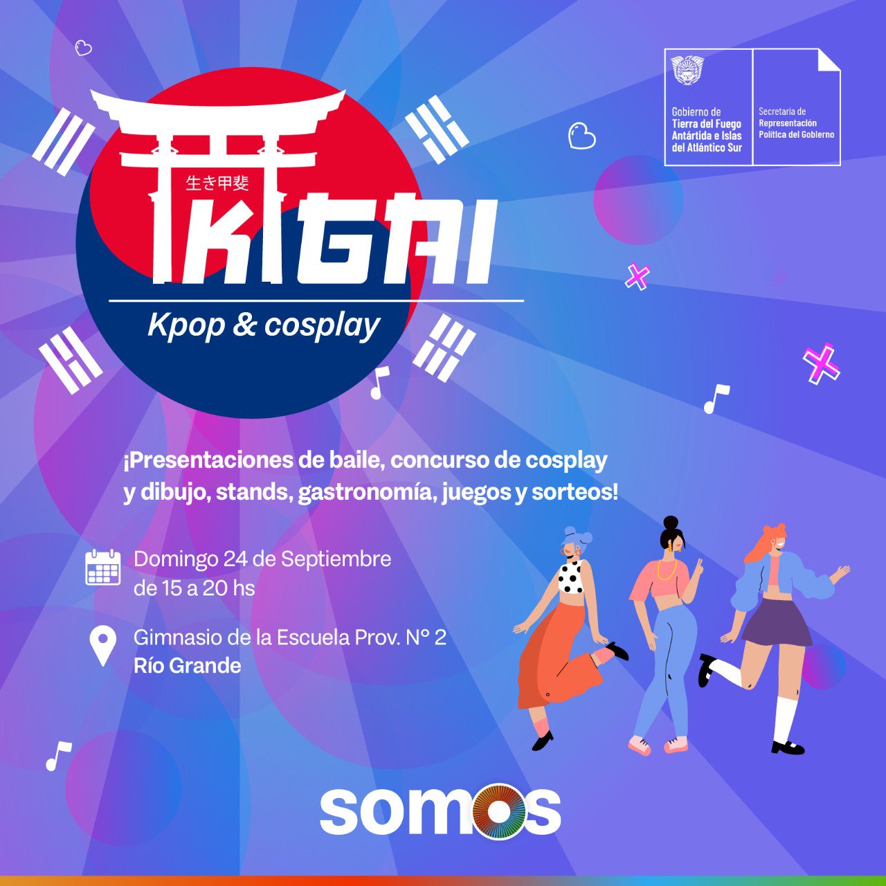 La Secretaría de Representación Política del Gobierno de la Provincia, llevará a cabo el evento denominado “Ikigai” en su primera edición, el mismo estará destinado a vecinas y vecinos de Río Grande afines a la cultura del K-pop y cosplay.