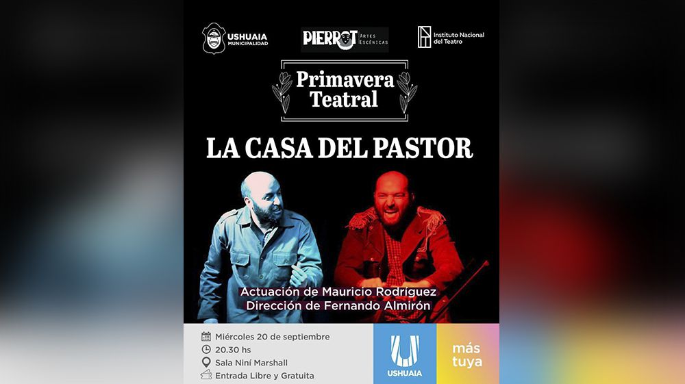 En el marco del ciclo ‘Primavera Teatral’ impulsado por la Secretaría de Cultura y Educación de la Municipalidad de Ushuaia junto al Instituto Nacional de Teatro (INT), este miércoles se presentará la obra ‘La Casa del Pastor’ a las 20:30 horas en la sala Niní Marshall de la Casa de la Cultura, con entrada libre y gratuita.