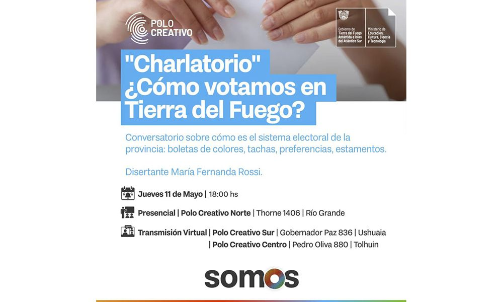 En el marco de las Elecciones Generales que se desarrollarán el próximo domingo, el Gobierno de la provincia llevará adelante la charla informativa ‘¿Cómo votamos en Tierra del Fuego?’ en los Polos Creativos de las tres ciudades fueguinas.