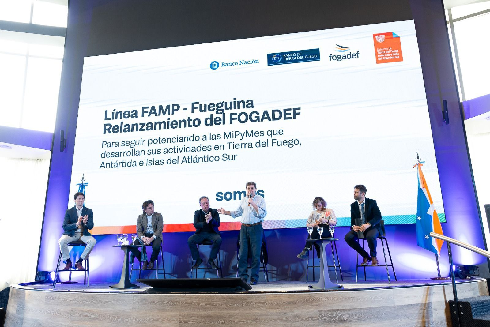 El acto de relanzamiento del FOGADEF sirvió también para que las autoridades provinciales presentaran las líneas de créditos, acordados días atrás entre el Gobernador Melella y la titular del Banco Nación, Silvia Batakis, que se instrumentarán a través del Banco Nación y el Banco Tierra del Fuego, y que estarán financiados por el FAMP.