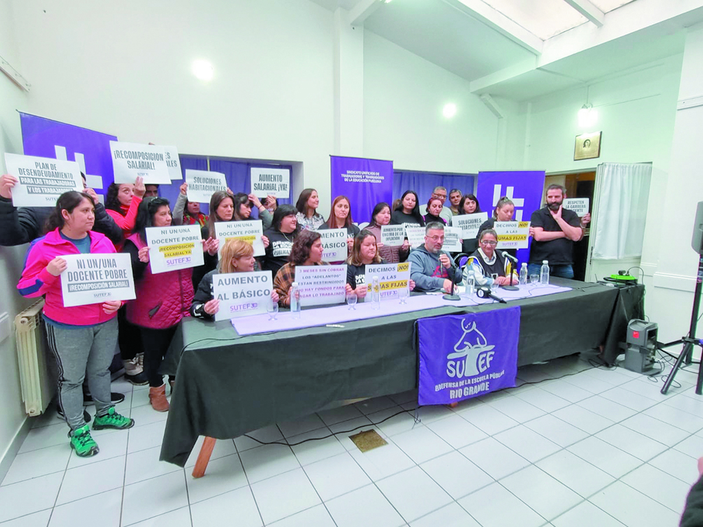 RIO GRANDE.- El gremio docente del SUTEF llevó adelante una conferencia de prensa en la sede sindical, en la cual se concretó la firma de un documento junto a los gremios del SEJUP, SIPROSA, ASOEM y ASEOM sobre una serie de puntos que se le viene exigiendo al Gobierno provincial, en el marco de las discusiones paritarias, las que los docentes fueron incorporando a su reclamo salarial.