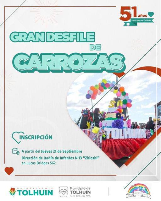 El Municipio de Tolhuin anunció la apertura de inscripciones para el Gran Desfile de Carrozas, evento que será una de las principales atracciones durante el Desfile Aniversario de Tolhuin.
