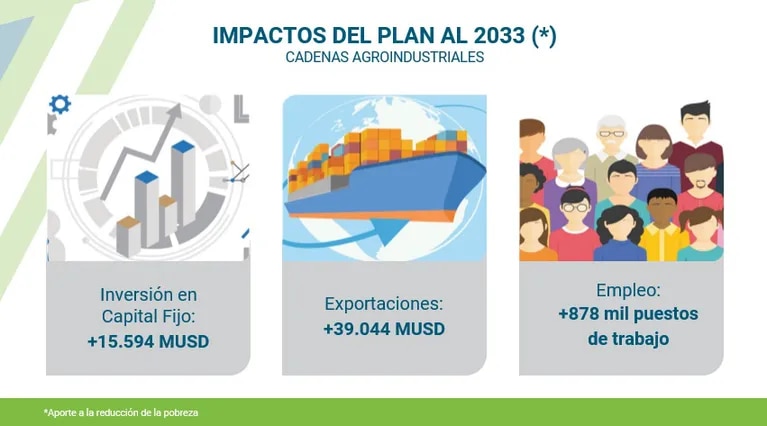 Los 30 complejos productivos entre los cuales se encuentran leche, algodón, arroz, huevos, vinos y girasol entre otros, podrían llegar a exportar casi unos U$S12.000 millones más que en la actualidad y generar casi unos 440.000 nuevos puestos de trabajo.