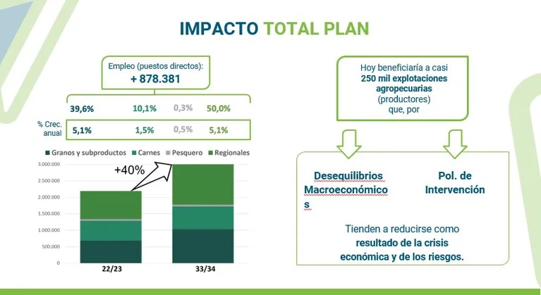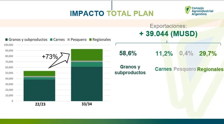 El director de estudios económicos de la BCBA, Ramiro Costa, destacó que el plan permite generar 900.000 nuevos empleos, casi US$ 40.000 millones adicionales en exportaciones y una inversión en capital fijo de US$16.000 millones.