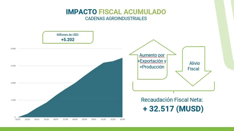 Además, la reducción en la presión tributaria que implica la implementación del plan sería más que compensada por el aumento en la producción y las exportaciones, lo que garantizaría que el Estado nacional no recibiría menos ingresos fiscales durante la década que dura la iniciativa.