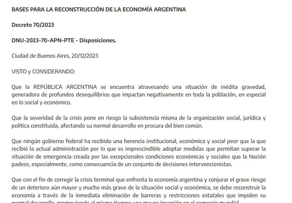 “Las sesiones extraordinarias se encuentran convocadas desde el 26 de diciembre de 2023 hasta el 15 de febrero de este año, incluyendo en su temario el Mensaje 7/23 del 27/12/23 enviado a la Cámara de Diputados con el proyecto de ‘Ley de Bases…’ que propone justamente la ratificación del DNU 70/2023”, explicó la magistrada