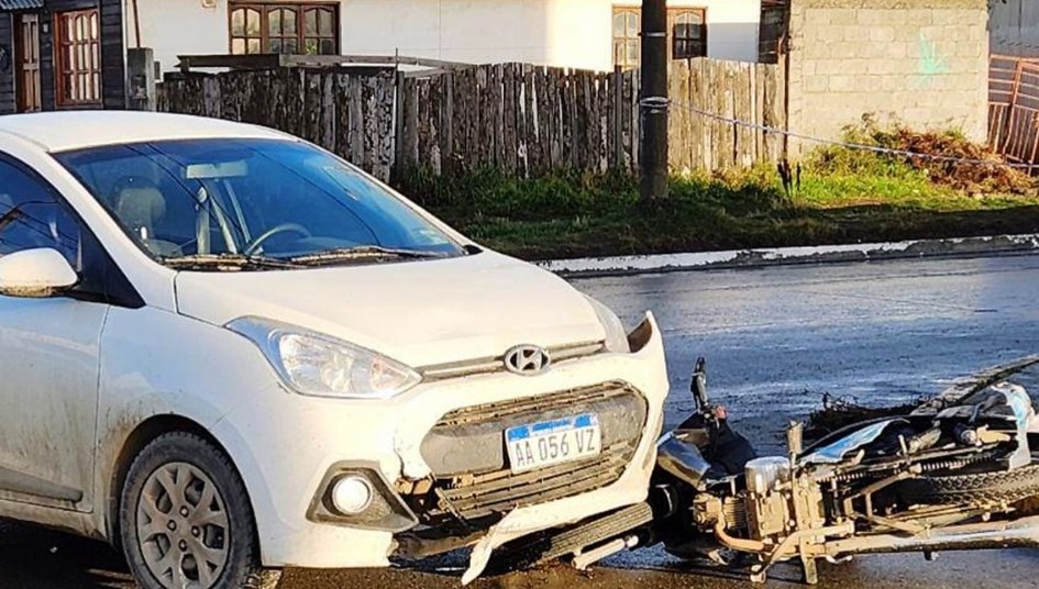 RÍO GRANDE.- En la esquina de las calles Moyano y Finocchio de esta ciudad, un vehículo colisionó a una motocicleta. Debido a las lesiones que sufrió el motociclista, debió ser trasladado en una ambulancia al nosocomio.