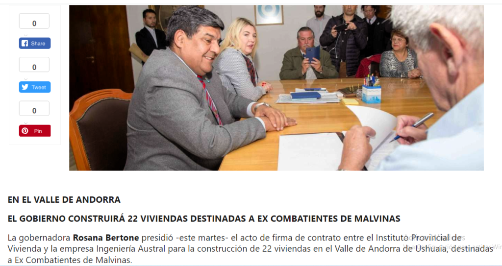El título de la gacetilla oficial publicada en esa fecha por el gobierno de Bertone, no dejaba ni deja dudas para quienes estaban destinadas esas viviendas: EN EL VALLE DE ANDORRA EL GOBIERNO CONSTRUIRÁ 22 VIVIENDAS DESTINADAS A EXCOMBATIENTES DE MALVINAS, se comunicó.